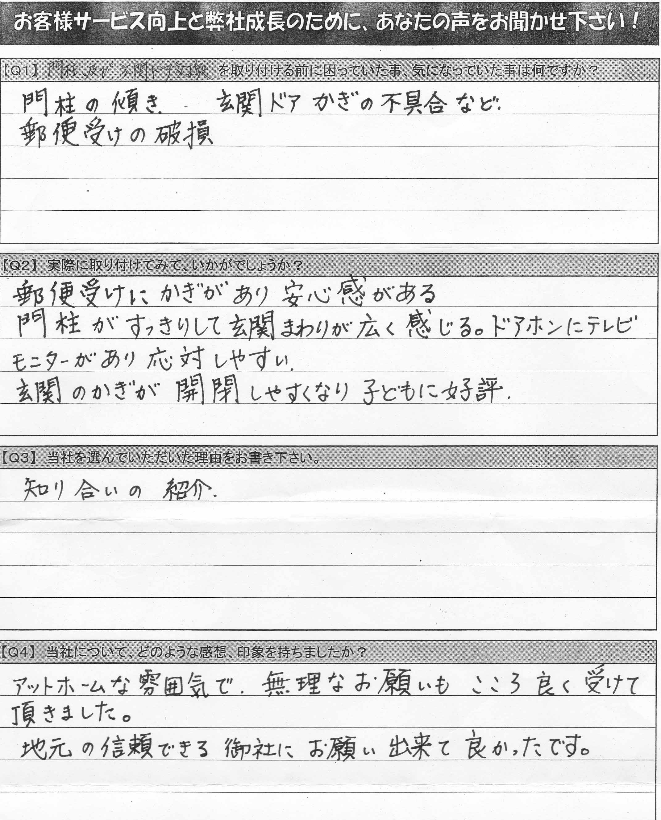 市内にお住まいのM様邸の玄関ドアと門柱リフォームいたしました。
