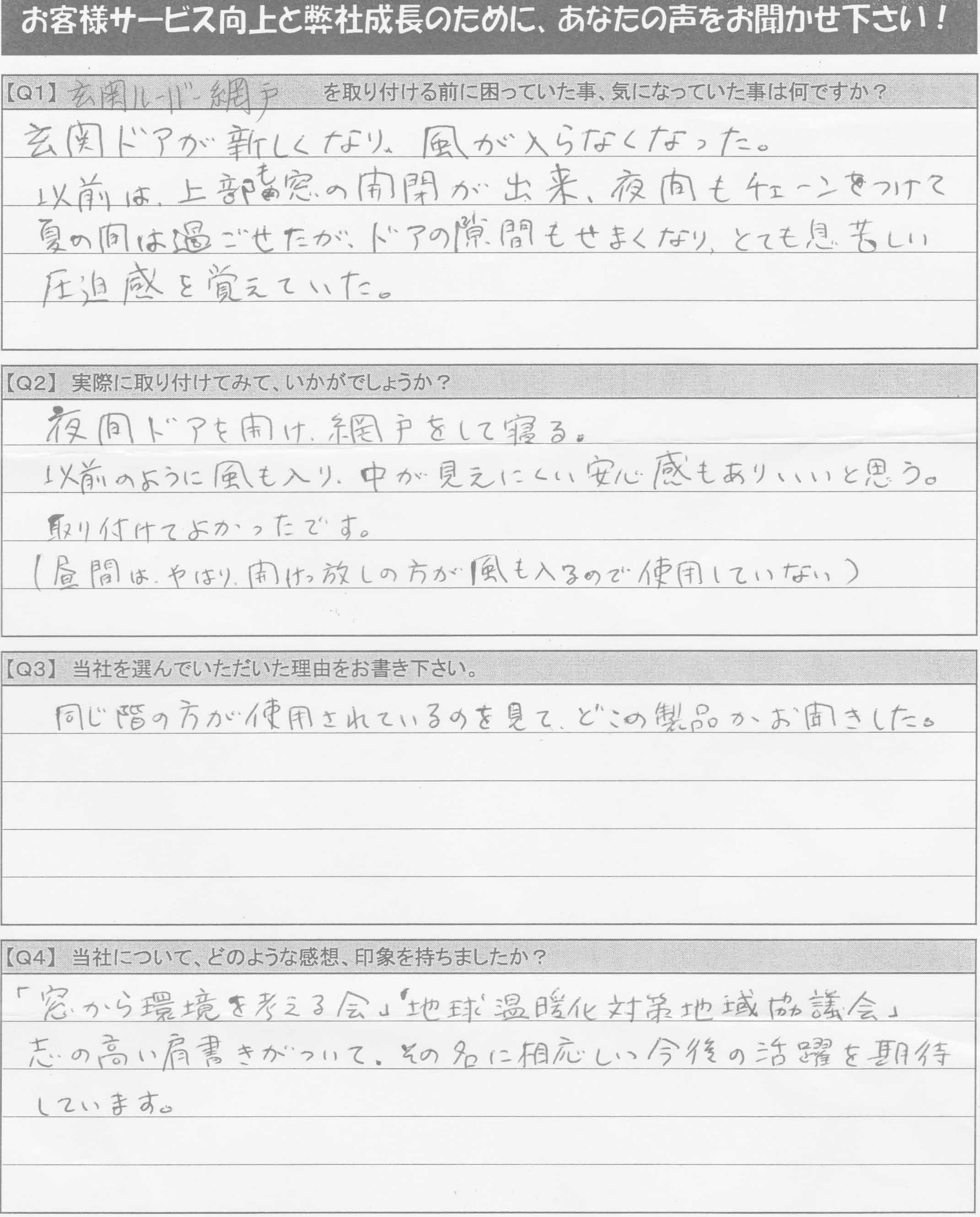 本日K様宅にお伺いしてマンション用玄関ルーバー網戸を取付てきました。