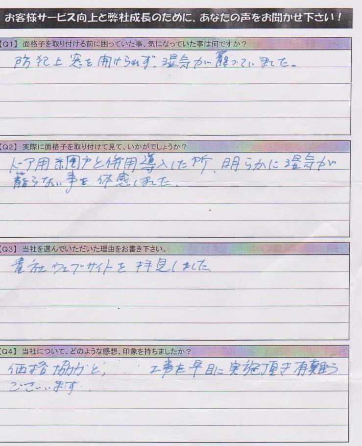 【Q2】実際に面格子を取り付けて見て、いかがでしたでしょうか?