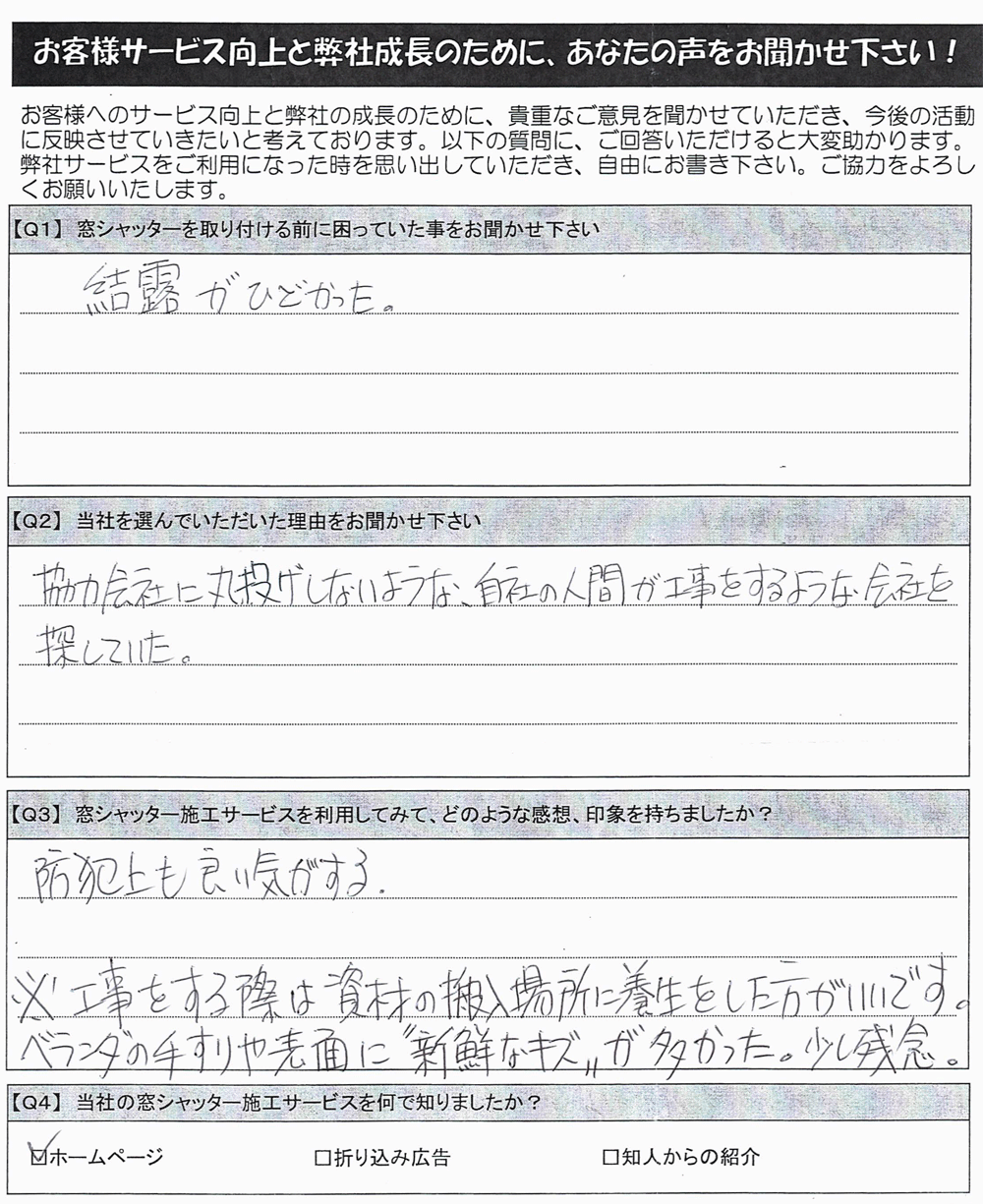 2階のベランダの窓2か所と東側の窓には雨戸の取付の計3か所です。