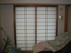 和室は最初組子付の和紙調ガラスシングルをお勧めしました。