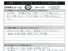仕事を、お願いする時は、価格も大切な条件だと思いますが、先ず、連体面で信頼ができるかどうかを確認させてもらいました。