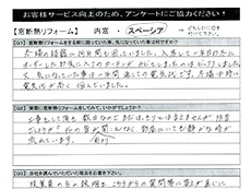 従業員の方の説明と、こちらからの質問などに答えが直ぐに教えてもらえたことや、何より他社と比べた際に、料金が一番リーズナブルだったのも、決め手となりました。
