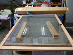 今回組み込むガラスは、防音合わせガラスです。日本板硝子「ソノグラス」。 |